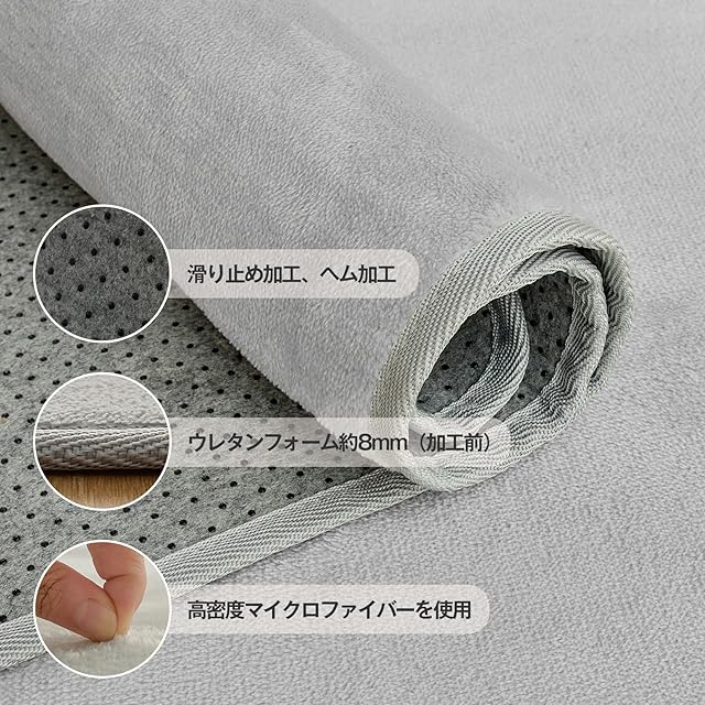 【お子さまやペットのいるご家庭に嬉しい<はっ水加工>・滑り止め付きのラグ】液体をこぼしても、カーペット表面で水玉状になるのでサッと拭くだけ!汚れが付きにくく、お手入れ簡単です。(防水ではありませんので放置すると染み込む恐れがあります。早めにお拭き取りください。)滑り止めも付いていて、床面をしっかりキャッチしてより滑りにくくなりました。掃除機をかける時も滑らないのでストレスから解放されます。