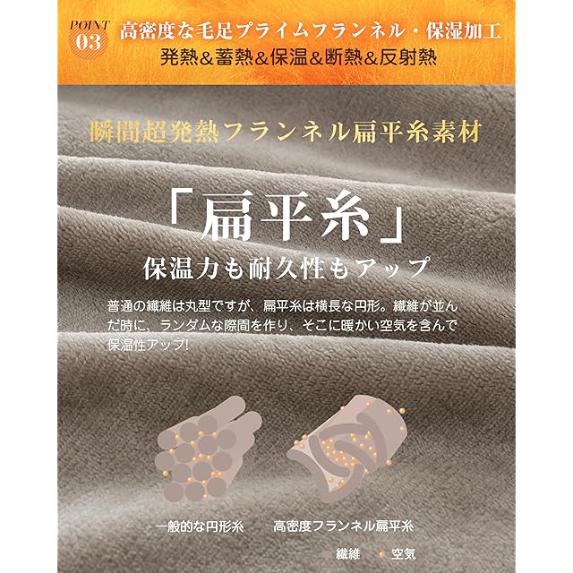 【静電気ダブル抑制・保湿加工】静電気防止加工が施されており、冬場の乾燥した空気による静電気を軽減します。裏地に保湿加工を施しており、お肌にハリと潤いを与えます。また、肌の水分を適切に調整し、潤いを保つ効果もあります。まるで裸族のふわふわ毛布です