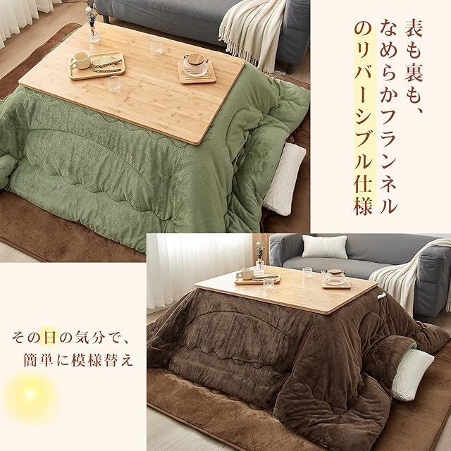【便利なポケット付き】おしゃれなシープボアとフランネルを使用、見た目かわいい。リモコンや携帯が簡単に入る。【体にフィットする縫製】体に沿うフィットキルトを採用、綿のかたよりを防ぐ、こたつの中の熱を逃しにくい。※205*285cm/205*315cmのこたつ布団は普通のキルト仕様。【撥水効果で汚れにくい】飲み物をこぼしてしまっても、サッと拭き取れていつでも清潔。