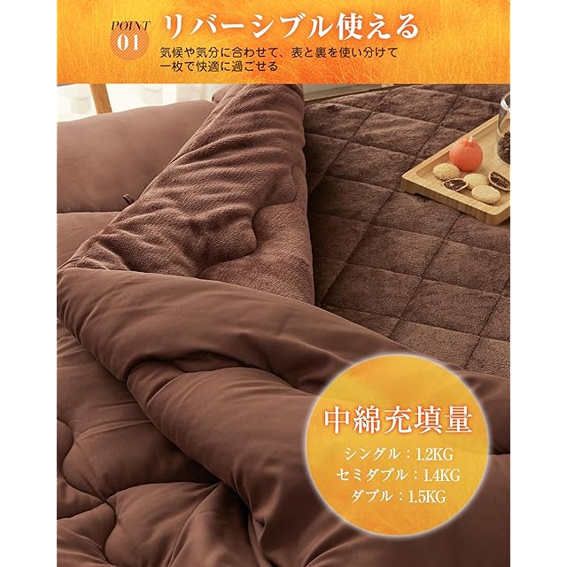【リバーシブル・両面使える掛け布団】表地にはあったかフランネル生地で、保温機能をプラスしてさらに暖かい。裏地には触りなめらかピーチスキン生地で、雲の中に被せたような柔らかさがあります。2種類の素材が楽しめるかけ布団、どちらもやわらかな触感で肌触りも抜群です。掛けカバーなしでそのまま使えます。静電気防止加工で乾燥な季節でもご心配なく使用できます。