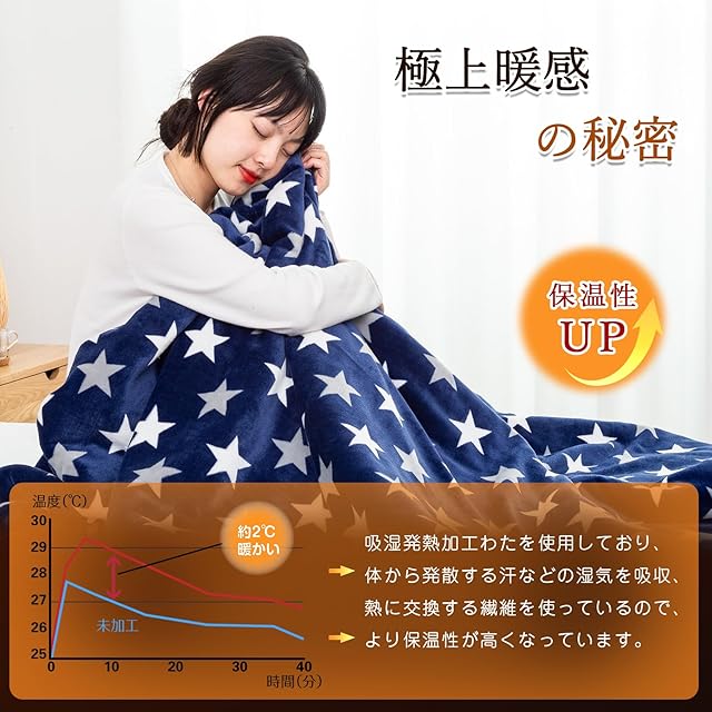 吸湿発熱繊維を使用しています。 体から発散する汗などの湿気を吸収、熱に変換する吸湿発熱繊維を使っています。 この吸湿発熱は「凝縮熱」と呼ばれるもので、水蒸気が水に変化する時に起こる熱エネルギーで繊維が湿度をコントロールし、汗で身体が冷えるのを防ぎ、快適な睡眠を得られます。