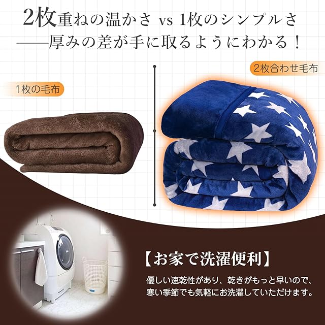 VK Living 毛布 二枚合わせ ダブル あったか 厚手 掛け毛布 襟付き ネイビー180x200cm