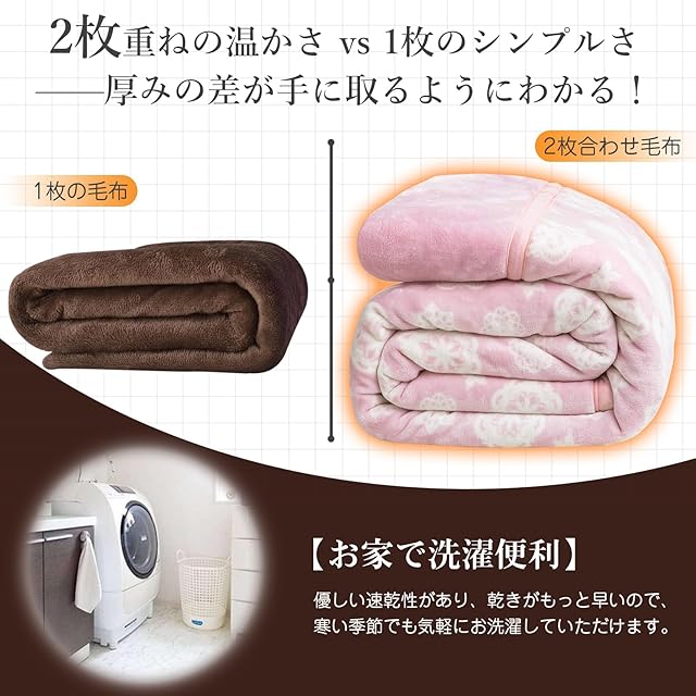 VK Living 毛布 二枚合わせ シングル あったか 厚手 掛け毛布 襟付き ピンク140x200cm