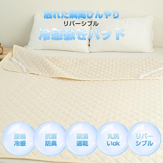 VK Living 敷きパッド シングル 夏 リバーシブル 冷感マット 瞬間冷却 吸湿速乾 抗菌防臭 丸洗い 140x200cm ベージュ