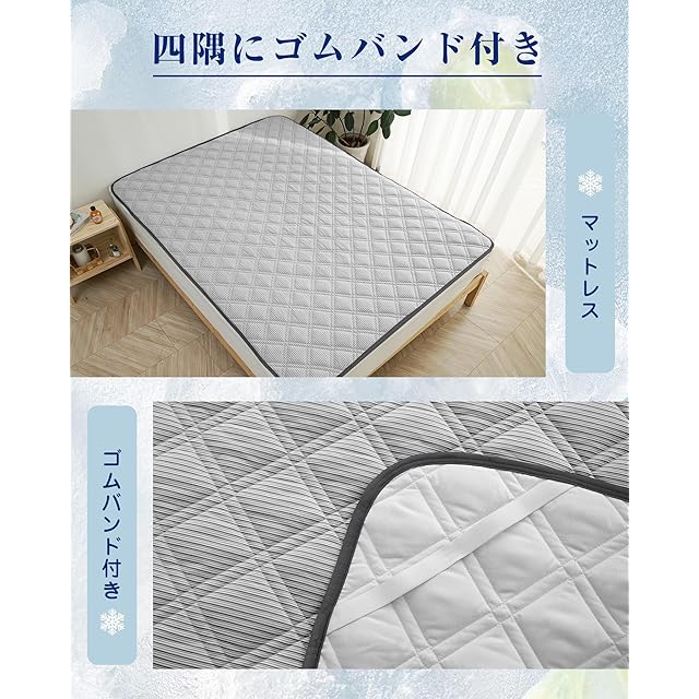 【 ゴムバンド付きで簡単固定】 四隅に付いたゴムバンドで、マットレスや敷布団に簡単かつしっかりと固定できます。キルティングとパイピング加工で耐久性がアップし、洗濯機での丸洗いも可能です(洗濯ネット使用推奨)。速乾性に優れ、頻繁に交換したい方にも最適です。