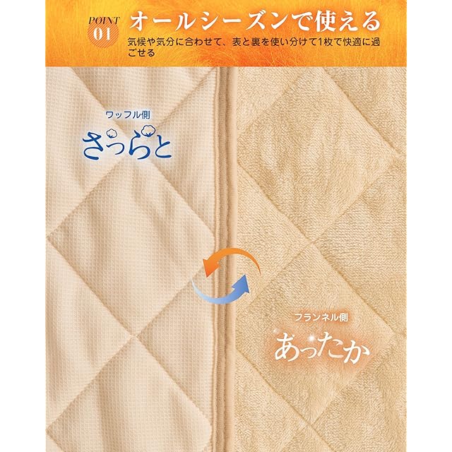 【リバーシブル】肌に触れる部分が表裏で違います。肌寒い時にはやわらかくて温かいフランネル側で、暑さや湿気を感した時にはワッフル側で。気候や気分に合わせて、表と裏を使い分けて1枚で快適に過ごせる!