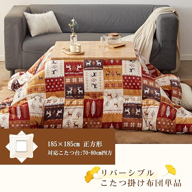 【商品仕様】こたつ掛け布団単品 サイズ:約185×185cm (対応こたつ台:70-80cm四方) 発熱綿約1.5kg ※こたつ台/こたつ敷き布団は商品に含まれません。