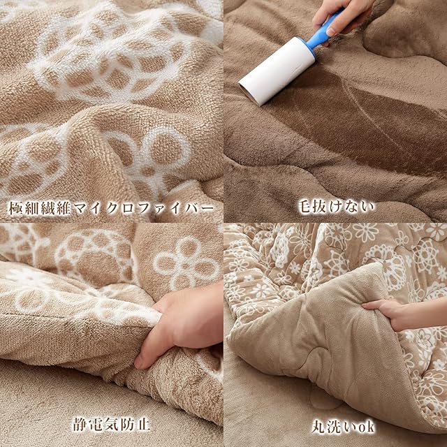 【便利なポケット付き】おしゃれなシープボアとフランネルを使用、見た目かわいい。リモコンや携帯が簡単に入る。【体にフィットする縫製】体に沿うフィットキルトを採用、綿のかたよりを防ぐ、こたつの中の熱を逃しにくい。※205*285cm/205*315cmのこたつ布団は普通のキルト仕様。【撥水効果で汚れにくい】飲み物をこぼしてしまっても、サッと拭き取れていつでも清潔。