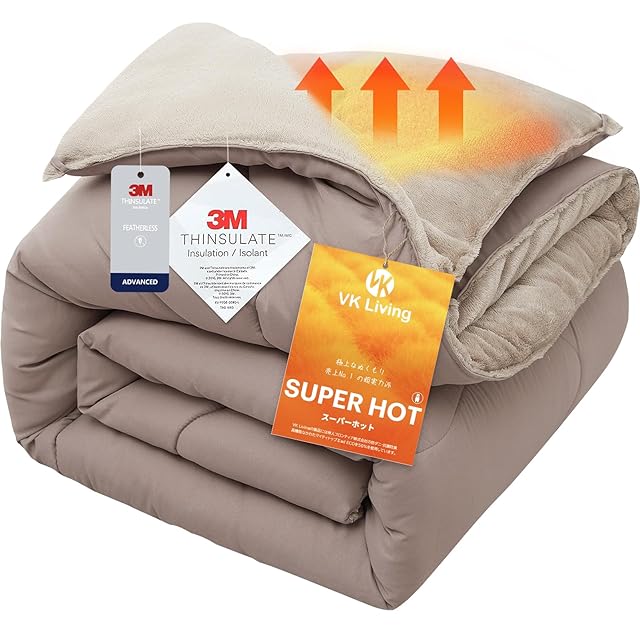 Mensu 掛け布団 ダブル 冬 シンサレート【宇宙服の次世代断熱材・シンサレート全面使用】【SUPER HOT】 2.5KG 5層構造 厚手 エアコン調温中綿 リバーシブル 両面使える 洗える ホコリ出にくい 抗菌防臭 蓄熱 冬用 190×210cm グレージュ