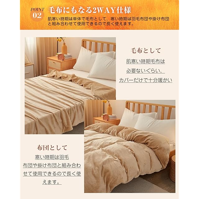 【毛布にもなる2WAY仕様】肌寒い時期は単体で毛布として、寒い時期は羽毛布団や掛け布団と組み合わせて使用できるので長く使えます。季節の変わり目や微妙な温度調節に最適。