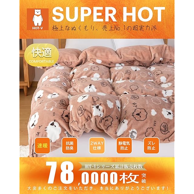 【HOT-Vシリーズ】人気のHOT-Vシリーズ、今年で6周年!5年連続こたつ布団第1位、敷きパッド第1位、掛け布団第1位、2年連続こたつマット第1位、こたつ布団セット第1位、5冠達成!合計78萬枚突破!大変多くのご注文をいただき、本当にありがとうございます。