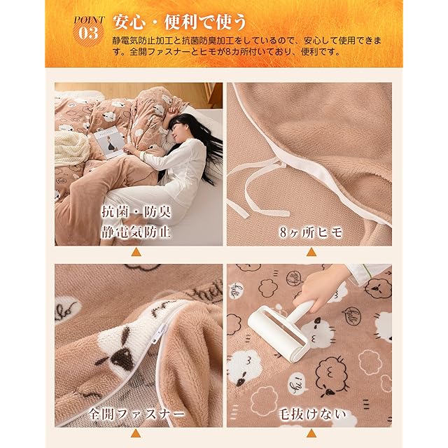 VK Living 掛け布団カバー 冬 シングル あったか フランネル 布団カバー【SUPER HOT】 毛布にもなる2WAY仕様 抗菌防臭 掛けカバー 全開ファスナー 8ヶ所ループ付き 150×210cm 羊柄・ブラウンVKJ061