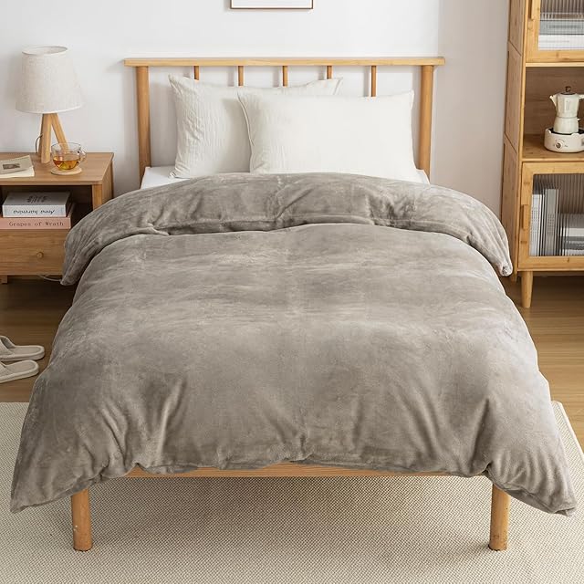 VK Living 掛け布団カバー シングル あったか フランネル 布団カバー 冬 抗菌防臭 掛けカバー 全開ファスナー 8ヶ所ループ付き 150×210 グレージュ