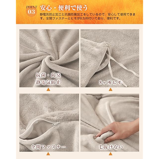 【静電気防止】静電気防止加工をしているので。静電気の発生を抑制できます。 【毛玉防止】毛玉ができにくいアンチピリング加工を施したフリースなので、毛玉ができにくく、肌触りの良さが長続きします。 【抗菌防臭加工で清潔】抗菌防臭加工を施し、汗のニオイや部屋干しの生乾き臭を気にせず使えます。