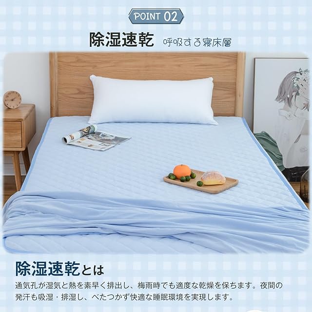 【呼吸する寝床層:除湿速乾】細かい通気孔が無数のガードマンのように、湿気と熱を素早く排出し、マット表面を乾燥快適に保ちます。夜中に汗をかいても、すぐに吸湿・排湿し、べたつき感から解放され、乾燥した睡眠環境を実現します。