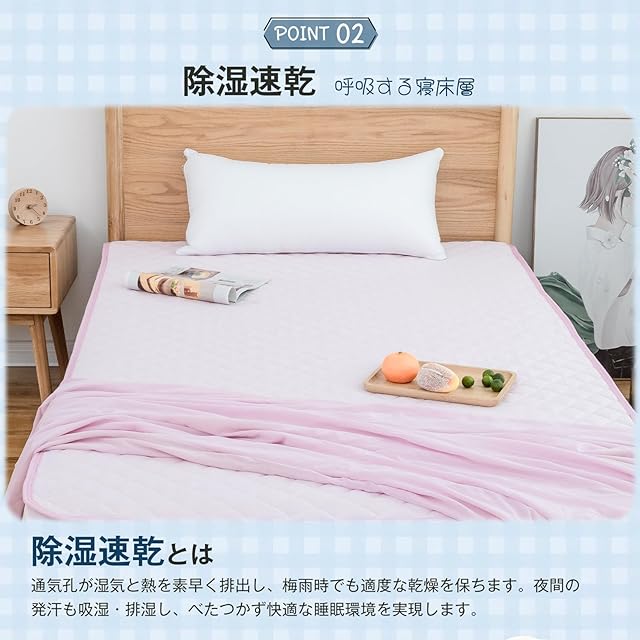 【呼吸する寝床層:除湿速乾】細かい通気孔が無数のガードマンのように、湿気と熱を素早く排出し、マット表面を乾燥快適に保ちます。夜中に汗をかいても、すぐに吸湿・排湿し、べたつき感から解放され、乾燥した睡眠環境を実現します。