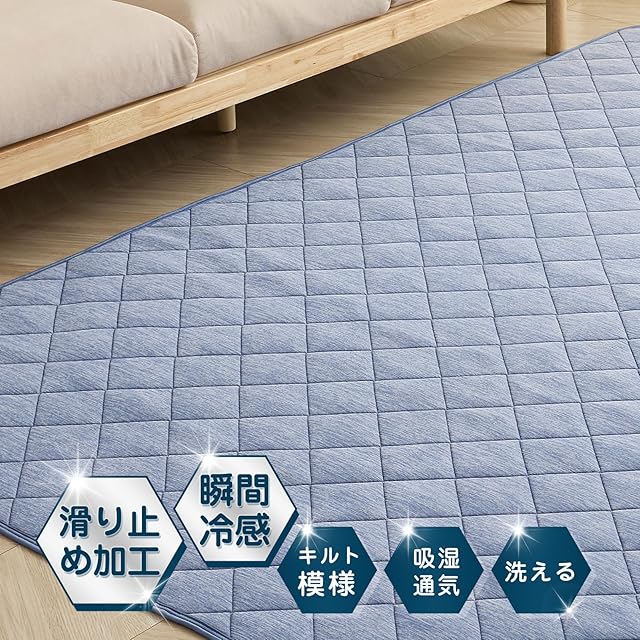 VK Living 冷感ラグ キルトラグ 涼しい 190×190 ネイビー