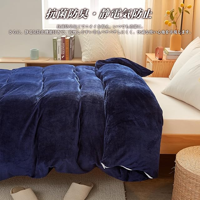 VK Living 掛け布団カバー 掛けカバー 冬 シングル フランネル 毛布にもなる2WAY仕様 抗菌防臭 150×210cm ネイビー