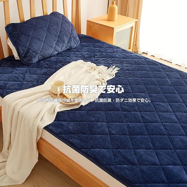 VK Living 敷きパッド フランネル リバーシブル シングル ネイビー