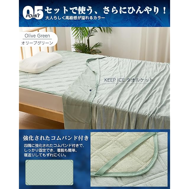 敷きパッド シングル 業界最高Q-MAX0.56 【KEEP ICE】 夏用シーツ 帝人TEIJIN中綿 リバーシブル 24時間持続制菌消臭 冷感持続 二重除湿速乾 冷感&タオル地 ベッドパッド 抗菌防臭 消臭 グリーン 100×200cm Mensu