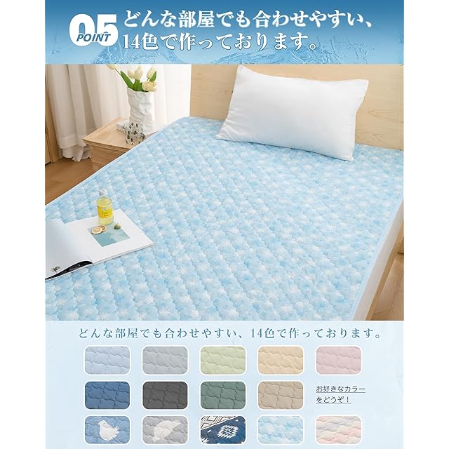 VK Living 敷きパッド シングル 冷感 【SOFT ICE】 しきぱっと 夏用 シーツ ひんやり 【TEIJIN マイティトップ中綿使用】 ベッドパッド 24時間持続制菌消臭 敷パッド オールシーズン 二重除湿速乾 洗える 防ダニ 抗菌防臭VKJ 100x205cm スノー柄 ブルー