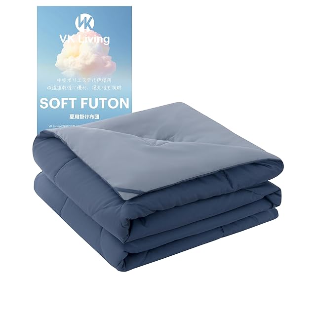 VK Living 夏用掛け布団 シングル 【調温なかわた・TEIJIN高機能中綿】 掛け布団 夏用 五層構造 2025年新技術 24時間持続制菌消臭 調温布団 洗える 冷房対策 軽量 SEK衛生認証 抗菌防臭 肌掛け布団 夏布団 かけ布団 春 夏 秋 140×190cm ネイビー&ブルー