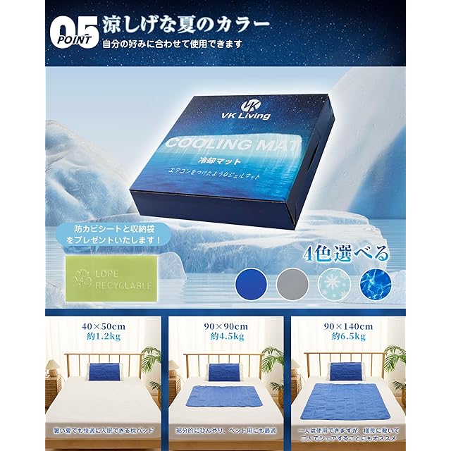 【ケース・防カビシート付き】VK Livingの冷感マットは、夏の暑さに対する快適な解決策であり、夏の贈り物にもぴったりです。高品質な素材とスタイリッシュなデザインで、涼しさを演出し、収納にも便利です。天気が暑くなると、温度差によって輸送中に水蒸気が発生することがあります。そのため、防カビシートと収納袋もプレゼントいたします!