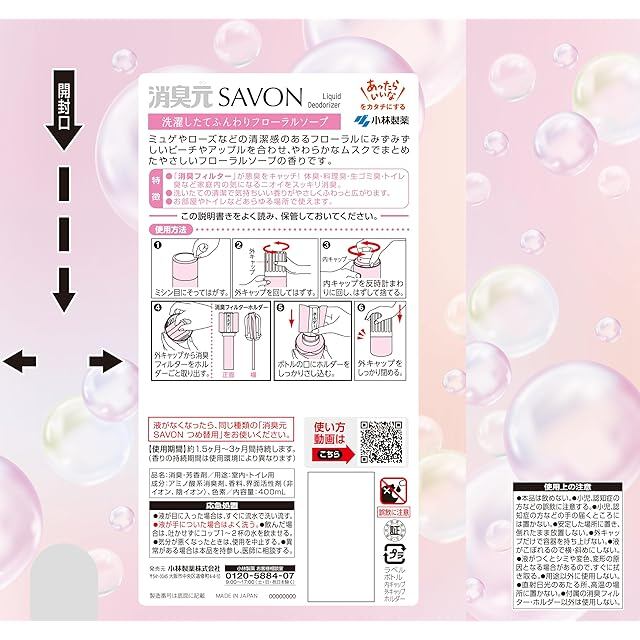 【洗いたての清潔な香り】消臭元SAVON(サボン)は、洗いたての清潔で気持ちいい香りがやさしくふわっと広がります。おうちのさまざまなニオイにマルチに効く置き型の消臭芳香剤で、お部屋やトイレ、様々な場所で気持ちよくお過ごしいただけます。家族みんなが気持ちいい清潔な香りがおうちをやさしく包み込みます。