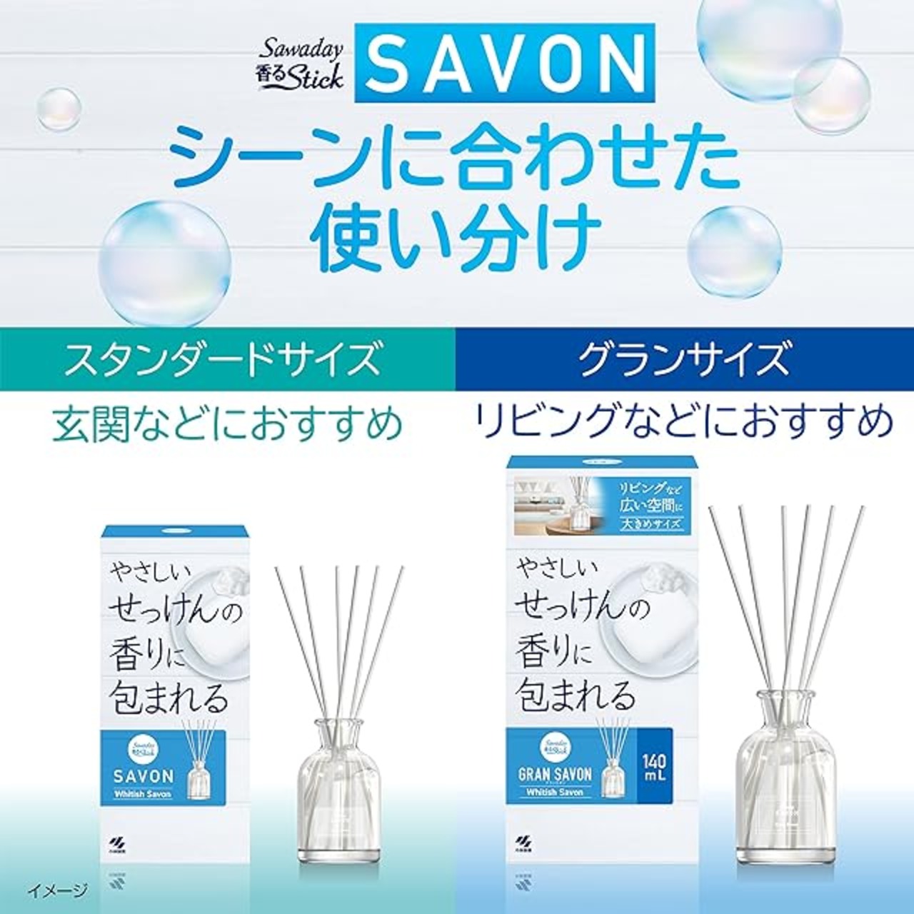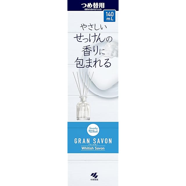 サワデー香るスティック グラン SAVON(サボン) ホワイティッシュサボンの香り 広い空間に大きめサイズ 芳香剤 部屋用 詰め替え用 140ml ルームフレグランス