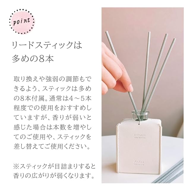 ✅【ご注意】■輸送中の液漏れを防ぐため、 蓋を固くしています。 開ける際は商品ページの手順を参考に開封してください。※不安定な場所での開封は避け、平らな安定する場所で開封してください。■本品は飲食物ではありません。誤飲等にご注意ください。■万が一目や口に入った場合は、ただちにきれいな水で洗浄してください。また、皮膚に付着した場合は、石けんなどでよく洗い流してください。異常があらわれた場合は、直ぐに医師の診察を受けてください。■肌に直接塗る等、芳香以外の目的では絶対に使用しないでください。■衣類/家具/樹脂/壁/カーテン/床等、変色/変質するおそれがありますので、リードスティックが直接触れないようにしてください。■フレグランスオイルの特性により、フレグランスオイル/リードスティックが多少変色/色落ちする場合がございますが、使用上及び品質には問題ありません。■高温多湿、または低温の場所や直射日光、火気付近を避け、乳幼児やペットの手の届かない場所で保管·使用してください。