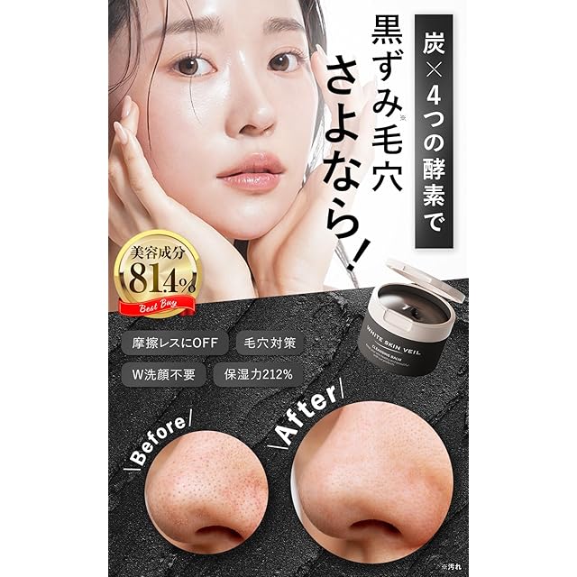 ✨【毛穴専門】毛穴ケア専門ブランドのホワイトスキンベールが本気で作った毛穴 クレンジングバーム 黒。炭とAHAを配合したことで酵素洗顔の力もパワーアップ!w洗顔不要のクレンジングだから毎日のケアが楽に