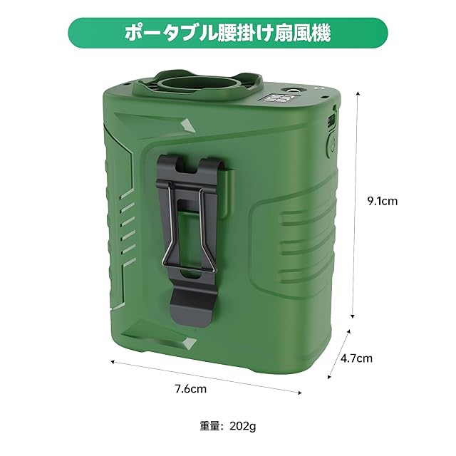 耐久性と滑り止め・落下防止設計:高品質な素材で作られたこの扇風機は、耐久性、滑り止め、耐衝撃性に優れています。デュアルメタルクリップにより、ベルトやシャツにしっかりと固定され、安全で信頼性の高い冷却体験を提供します。ウェアラブルな腰掛け扇風機や充電式腰クリップ扇風機を必要とする方に最適です。