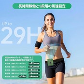 強力な風力と長時間の稼働時間:高性能モーターを搭載し、最大12 m/s(39 ft/s)の風速を実現。5段階の風量調節が可能で、さまざまなニーズに対応します。内蔵の5000mAhバッテリーにより、最大29時間の連続運転が可能で、外出先でも涼しさを持続させる効率的な充電式ポータブル扇風機です。