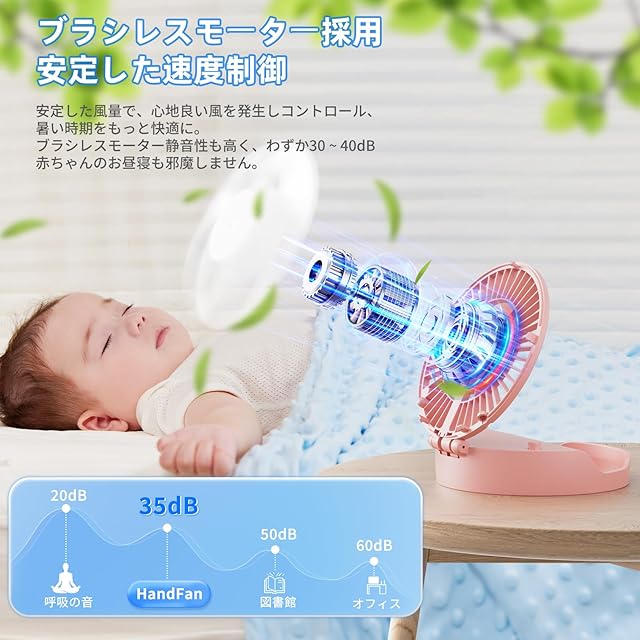 【3段階調節・180°調整可能】お好みに応じて、3階段風量を調整可能。自然に近い優しい風からパワフルな風まで、シチュエーションに合わせて微調整が可能です。そして、180°調整可能ので、お好みの角度で心地よい風を楽しめる。何度も実験を重ねた上で、ベストチョイスという5枚羽根を採用した。携帯扇風機の最大風量と運転安定性を実現した、静音力も抜群。アウトドア、花火大会、野球観戦などの夏イベントに欠かせないもの。