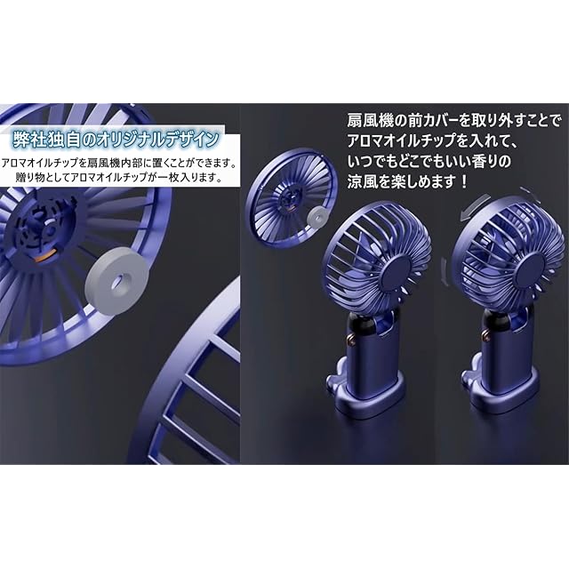 【2025年夏新型 アロマオイルチップ内蔵可能&手持ち/首掛け/卓上/スマホスタンド4in1携帯扇風機新登場】業界を震撼させた今までにない弊社独自のオリジナルデザインで、アロマオイルチップ搭載可能の携帯扇風機が新登場!!扇風機の前カバーを取り外すことでアロマオイルチップを入れて、いつでもどこでもいい香りの涼風を楽しめます!贈り物としてアロマオイルチップが一枚入ります。✨使い方は4種類(4Way)あります。卓上扇風機、手持ち扇風機(ハンディ)、首掛け扇風機(ハンズフリー)としてお使いいただけます。また、一緒に贈る台座と合わせてスマホスタンドとしても利用可能♪