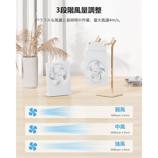 飛鳥の光 卓上扇風機 小型 usb 充電式扇風機 ミニ扇風機 卓上ファン 超強風 静音 超薄五枚羽根 デスクファン 折りたたみ式 風量三段階調節 180度角度調整 4 cm厚 長時間連続使用 パワフル送風 日本語取扱説明書付 熱中症対策 ホワイト