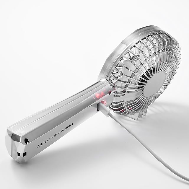 <b>レトロなデザインが特長のToffyシリーズの中でも、<br> ひときわ異彩を放つ、個性的で美しいハンディファンです。<br><br> これまでにない、抑揚のある曲線とクリスタルカットのコンビネーションは、<br> ハーフミラーを通した光(リュミエール)の効果をいっそう引き立たせます。</b><br><br> ●光のONとOFFとで、まったく表情を変える幻想的な存在感<br> 光をまとった心地よい風が夏の日に静かなきらめきを添えてくれます。<br><br> ●街に連れ出したくなるような、エレガントでスタイリッシュなデザイン<br><br> ●ランプでわかる充電状態<br><br> ●横置きにしても使用できるので、お仕事や身支度の際も便利!<br><br> 【商品仕様】<br> 品番:FN19<br> 品名:Lumiere(リュミエール) with Toffy LED ハンディファン<br> 外形寸法:約102(W)×220(H)×39(D)mm(付属品含まず)<br> 充電電池:リチウムイオン蓄電池3.7V 2,200mAh(保護回路付)<br> 充電時間:約3.5時間<br> 連続使用時間:約2〜7.5時間<br> 電源:5V 1.0A(USB充電式)<br> 風量:3段階(弱→中→強)<br> ライトモード:黄色(点灯→点滅)<br> USBケーブル長:約100cm<br> 主な材質:ポリカーボネート<br> 付属品:専用USBケーブル、ユーザーズガイド(保証書含む)