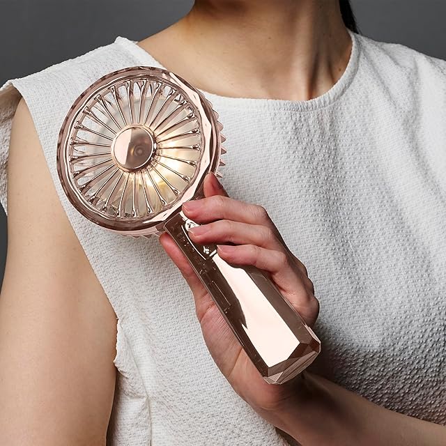 【Lumiere with Toffy/トフィー】 LED ハンディファン FN19 充電式 扇風機 ハーフミラー ライト付き クリスタルカット プレゼント ハンディ/卓上 2WAY 持ち運び 充電式 小型扇風機 風量3段階 エレガント おしゃれ FN19 (ピンクゴールド)