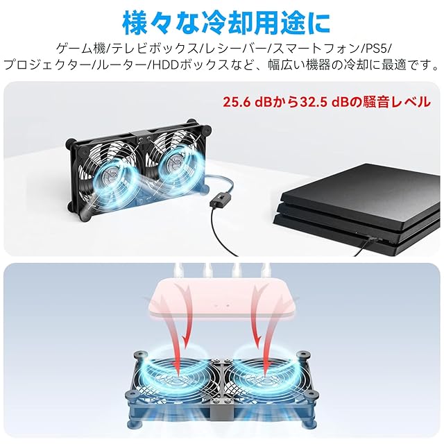 【幅広い実用性】120mm USBファンはパソコン、ルーター、HDDなどの冷却装置だけでなく、AV機器やゲーム機にも適しています。 USB端子を備えた機器に接続するだけで、配線の手間をかけずに簡単に冷却できます。