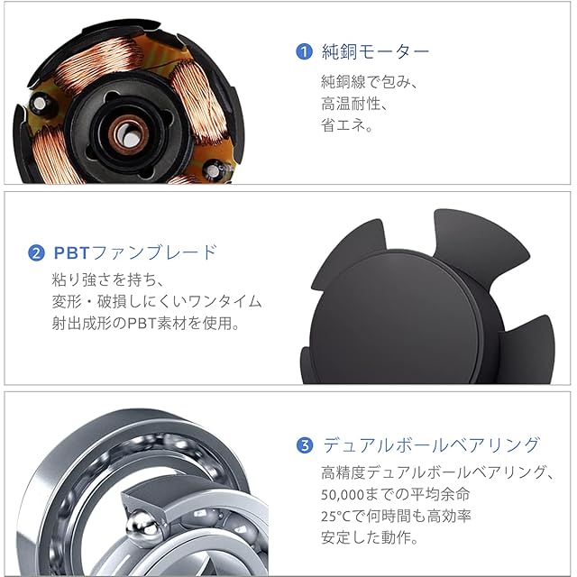 ❀ ベアリング:ダブルボールベアリングの寿命は50,000時間、ファンを安定して使用できます