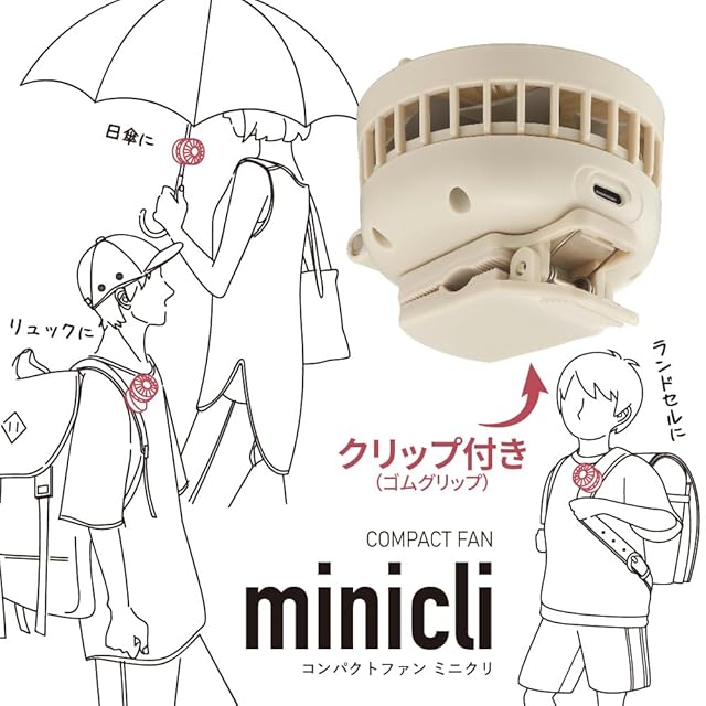 ドウシシャ コンパクトファン ミニクリ クリップ付き 風量3段階 USB電源 充電時間4.5時間 Type-C DC ベージュ