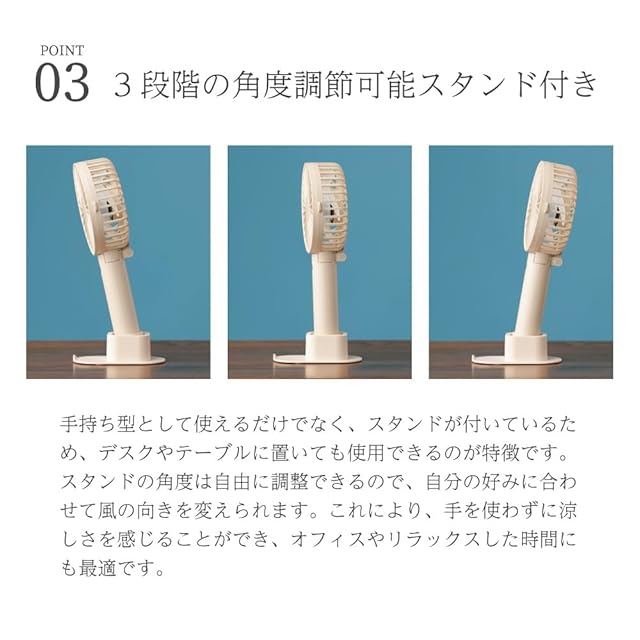 ハンディ・首かけ・卓上の3WAYで使えるハンディファン