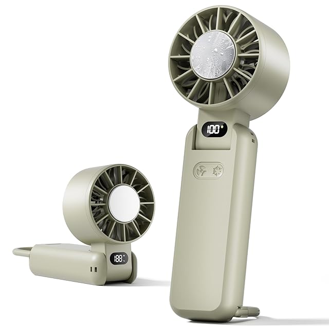 【瞬間冷感・超暴風実現】 ハンディファン 冷却プレート 携帯扇風機 6000mAh大容量 手持ち扇風機 ポータブル扇風機 冷却モード 5段階風量調節 強力 最長16時間連続使用 折りたたみ 扇風機 USB充電式 小型 クーラー LED残量表示 5WAY 手持ち/卓上/首掛け/腰掛け/鞄掛け カラビナ&ストラップ付き 軽量 熱中症対策/花火大会/キャンプ/アウトドア(グリーン)