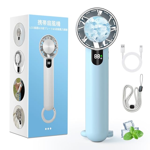 【2025夏新登場 -19℃瞬間冷却&LCD画面&5段階風力調節】ハンディファン 冷却プレート搭載 大風量 風量5段階 首掛け扇風機 4WAY (卓上·手持ち·首掛け·カラビナ付き) TYPE-C充電式 携帯扇風機 冷感 手持ち扇風機 長時間稼働 クーラー機能 強力静音 ミニファン 熱中症対策 小型 卓上 け ストラップ付き カラビナ付き ブルー