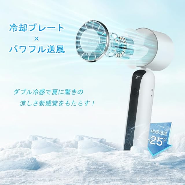 【急速冷感・冷却プレート付き】ハンディファンにはペルチェ半導体冷却プレートが搭載されており、ペルチェ素子の特性を活かし、プレートの温度は効率的に下げることができます。肌に触れるとひんやりとした感触を楽しめます。従来の送風のみのファンに比べて、さらに涼しさを実感できます。温度の高い夏場でも、より快適に過ごすことができます。