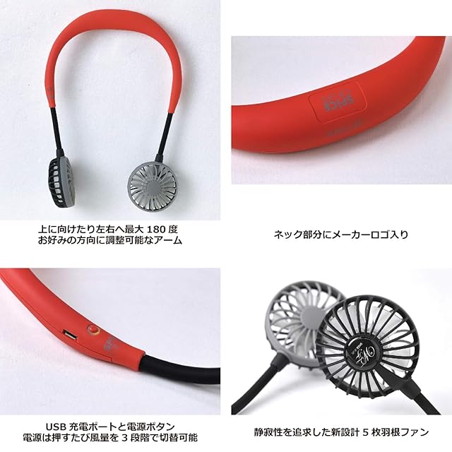SPICE OF LIFE(スパイス) ハンズフリー ポータブル 扇風機 WFan(ダブルファン) レッド 携帯 首掛け USB充電式 風量3段階調節 角度調整 5枚羽根 安全性試験済 DF30SS01-RD