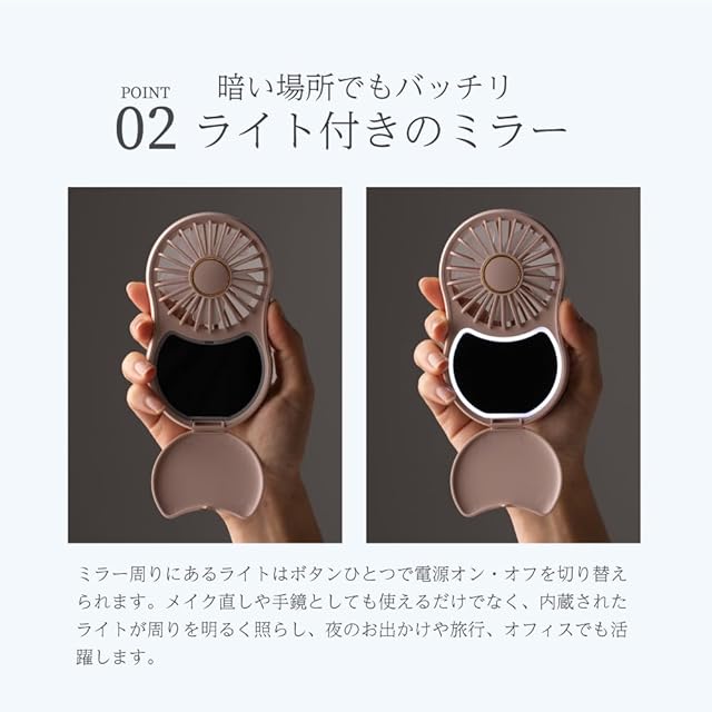 Smaly ミラーハンディファン ミント YNG-MF180 ミラー扇風機 鏡 小型 手持ち 化粧ミラーファン 携帯ファン