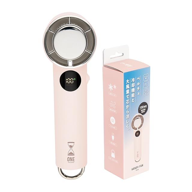 【冷却プレート搭載】【1-100の無段階調整】ワンセカンド ハンディファン 瞬間冷却 パワフル LEDディスプレイ ペルチェ カラビナ付き ネックストラップ付き Type-C対応 携帯扇風機 アウトドア ONE SECOND ピンク Pink