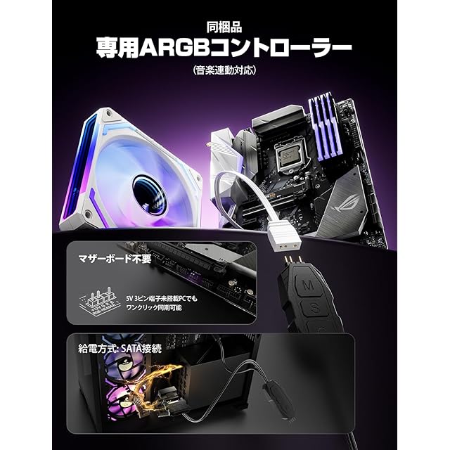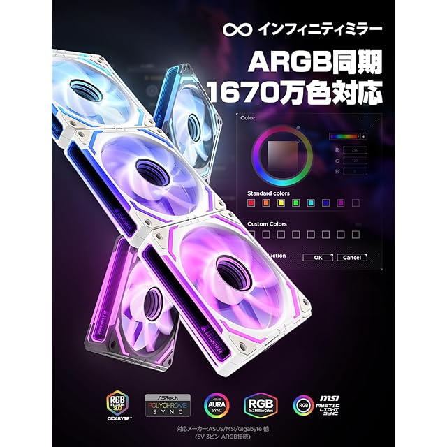 AsiaHorse COSMIQ PCケースファン 120MM 逆向(吸気) [ARGB インフィニティミラー] デイジーチェーン RGB ファン 4Pin PWM 5V 3Pin ARGB 2000RPM/風量68.5CFM/高精度・高性能FDBベアリング/作動時間50,000時間 Asus Aura ASRock GIGABYTE MSI RGBとの互換性あり COSMIQ-白-R