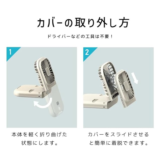 lafuture 携帯扇風機 ハンディファン 首掛け スタンド扇風機 手持ち扇風機 携帯扇風機 モバイルバッテリー ポータブル扇風機 スマホスタンド 充電式 3000mAh USB Type-C 静音 強力 三段階 小型 卓上扇風機 コンパクト (着脱式タイプ, サンライトベージュ)